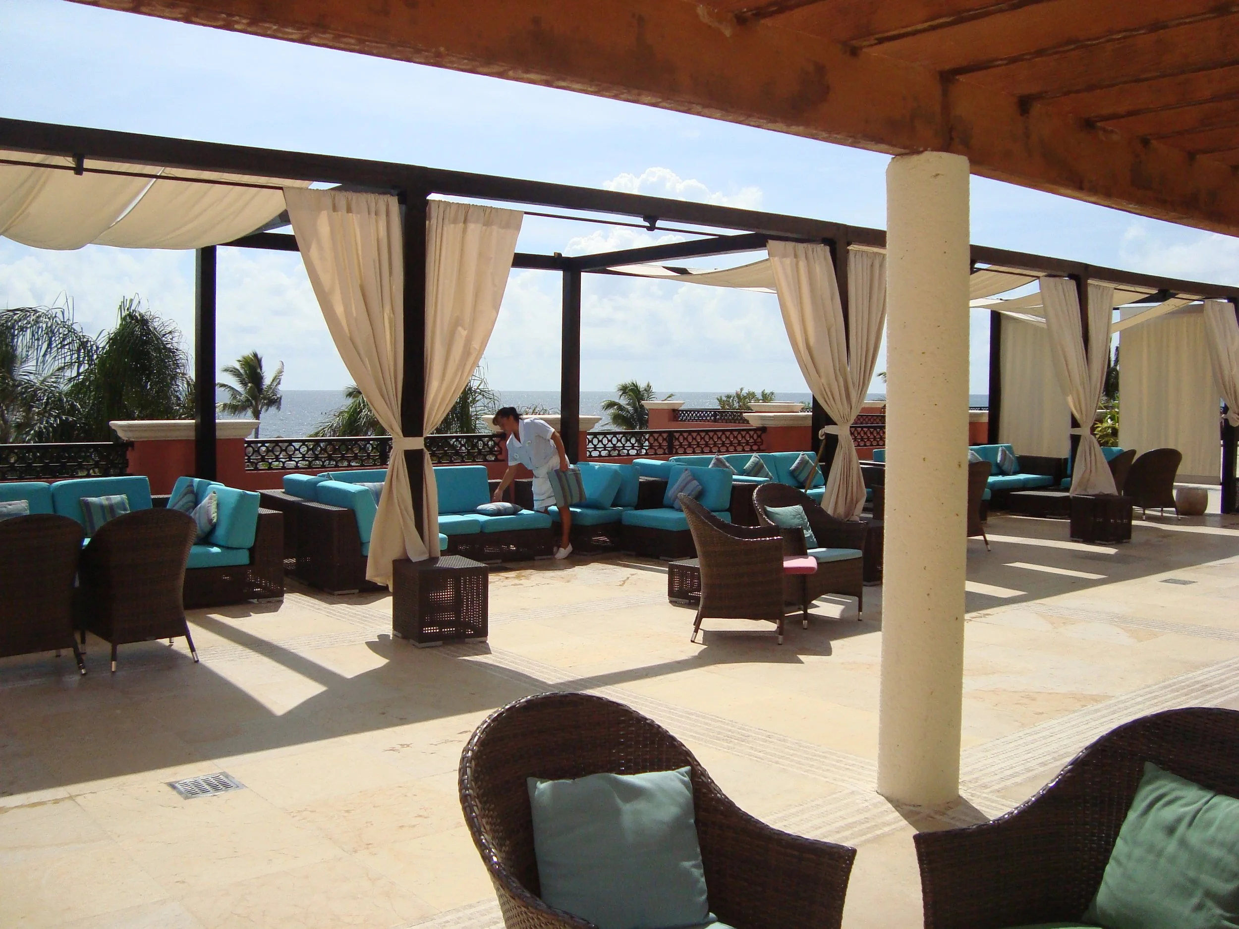 Sitting outside the main entrance, was this beautiful terrace. We sat here daily, and it was one of my favorite places to visit. It was usually not very crowded and provided a beautiful view of the pools and ocean. Sitting here at night after a long day of swimming was so relaxing.